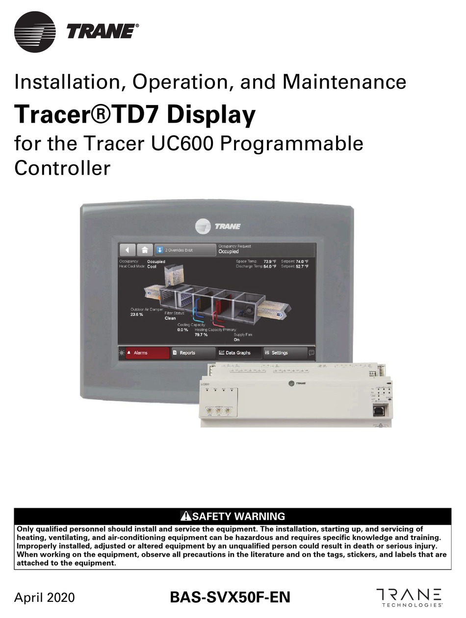 TRANE TRACER TD7 INSTALLATION, OPERATION AND MAINTENANCE MANUAL Pdf
